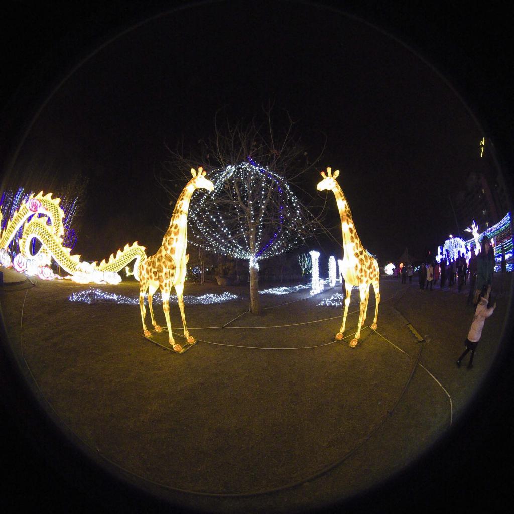 第1天 据说,这次在石家庄栾城卓达太阳城春节举办的灯会,是自贡国际一流彩灯创意团队倾力打造的。 今天就带着Camorama4K全景摄像机来转转