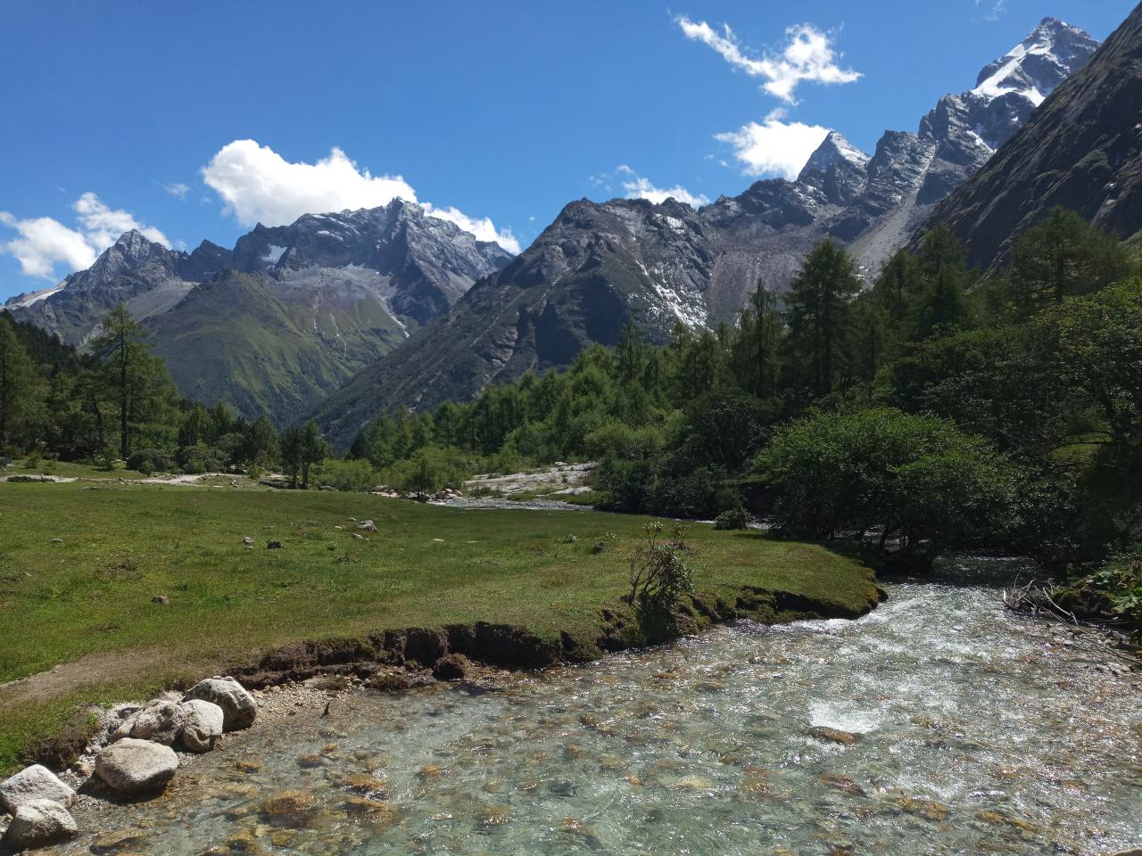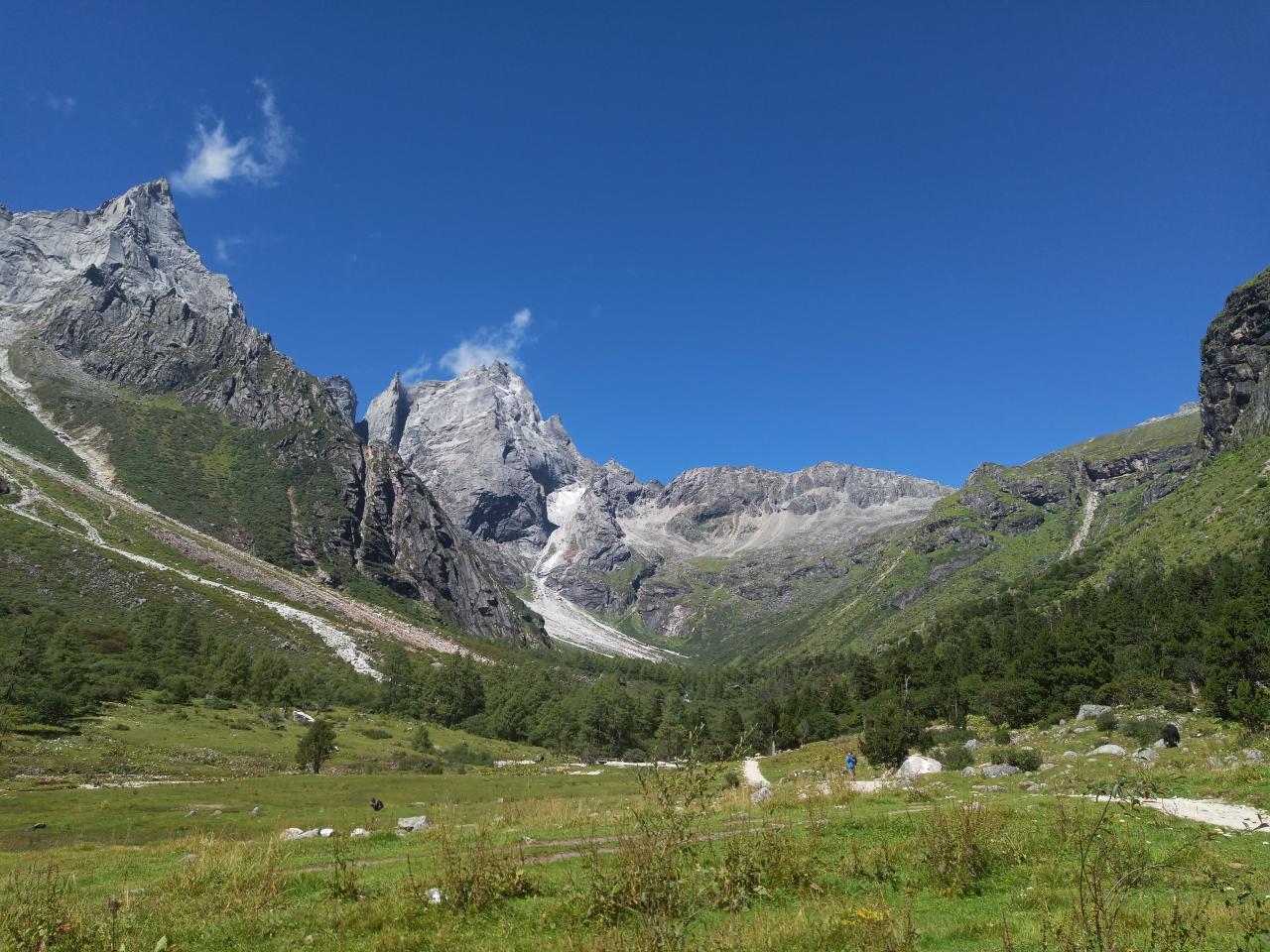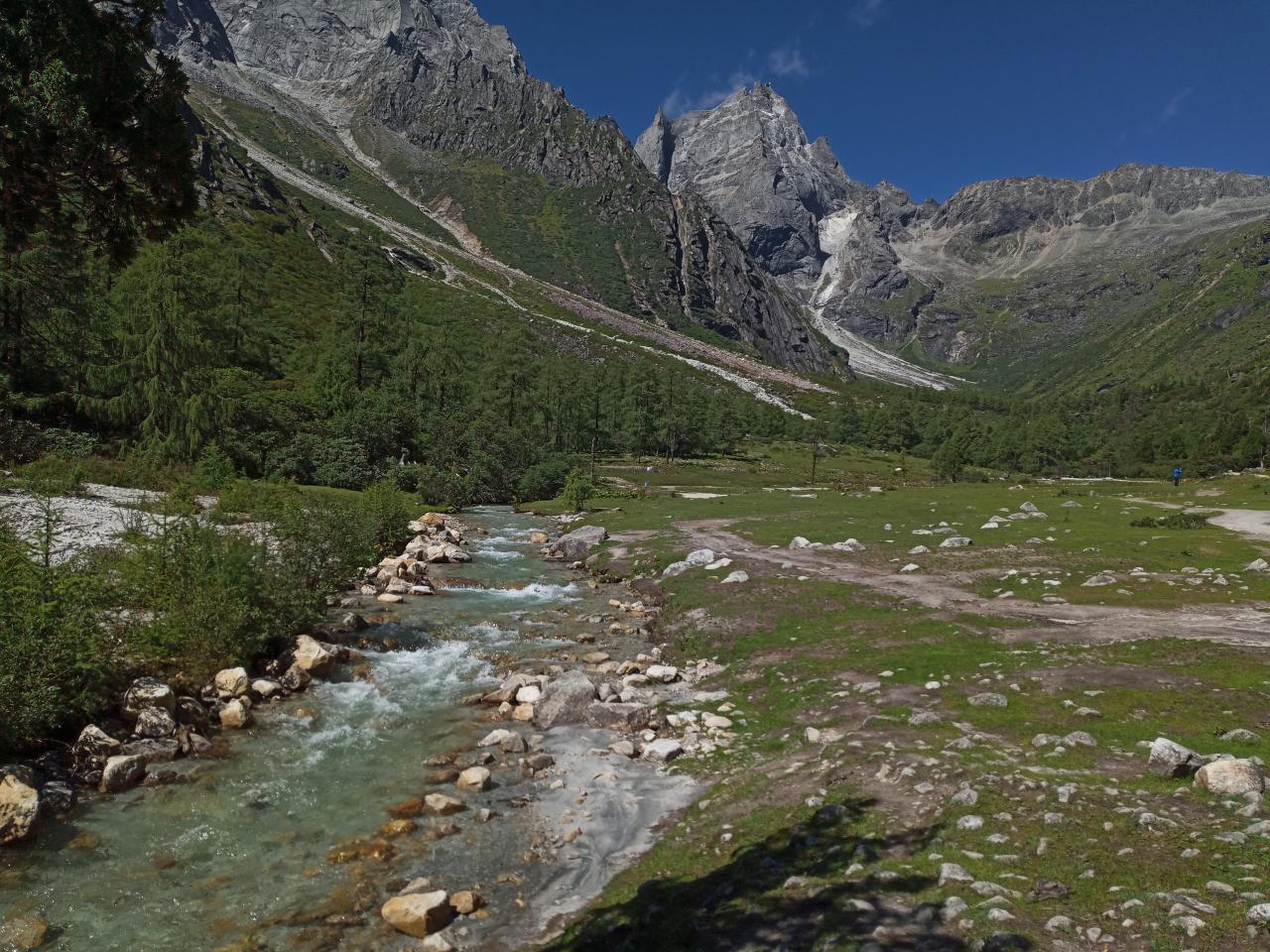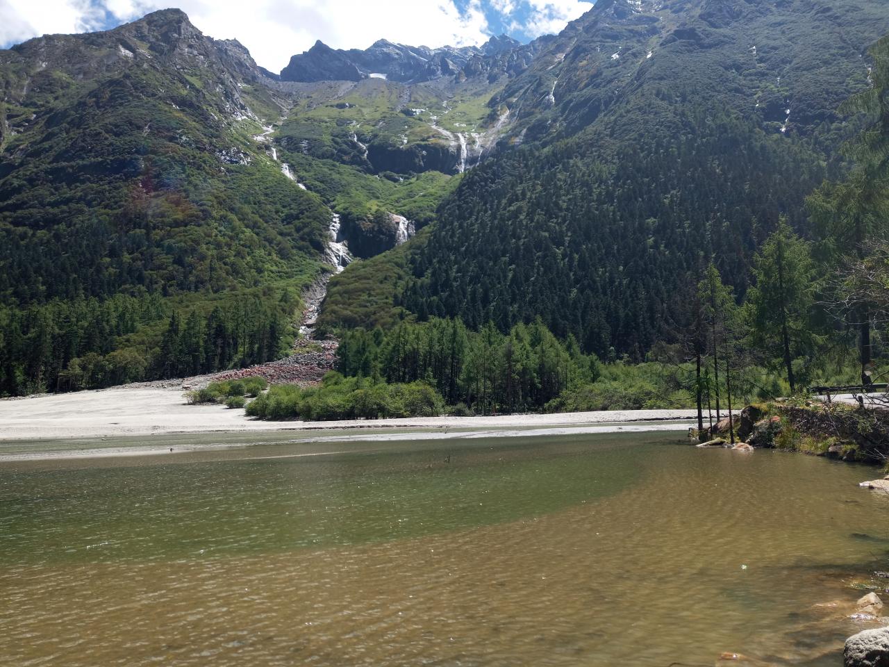 第1天 看到山顶的融化的冰水向下流,可能这就是毕棚沟有如此多湖泊的原因吧!