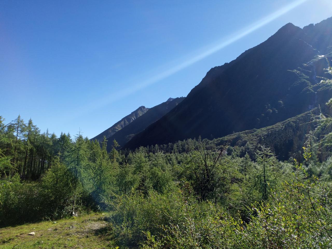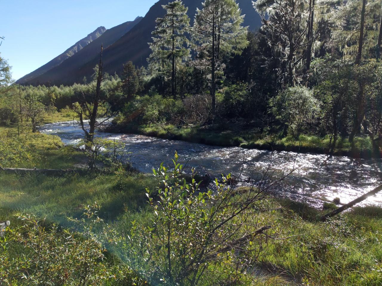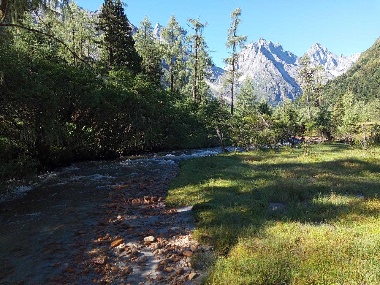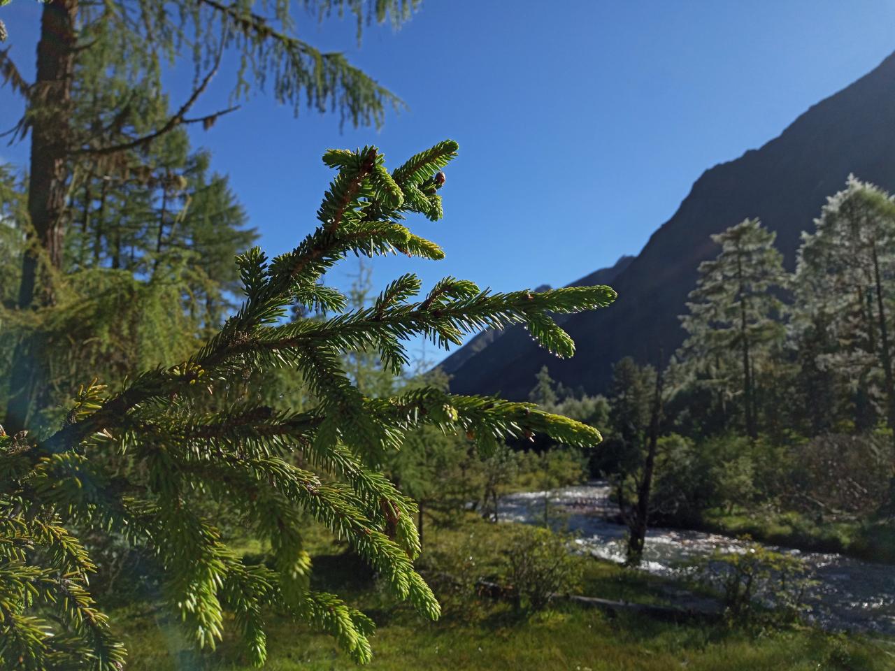 第1天 随着海拔的升高和太阳的升起,阳光普照大地,整个毕棚沟仿佛被点亮了一般。