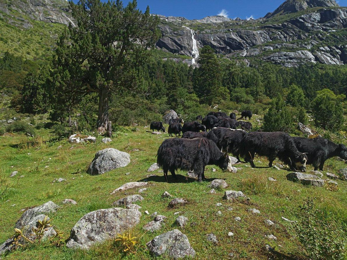 第1天 进入景区有幸见到了牦牛群,它们悠然自得的吃着草,厚重的皮毛可抵御寒冷,青山绿水有草作伴,动物的生活也许就是这么简单朴素。
