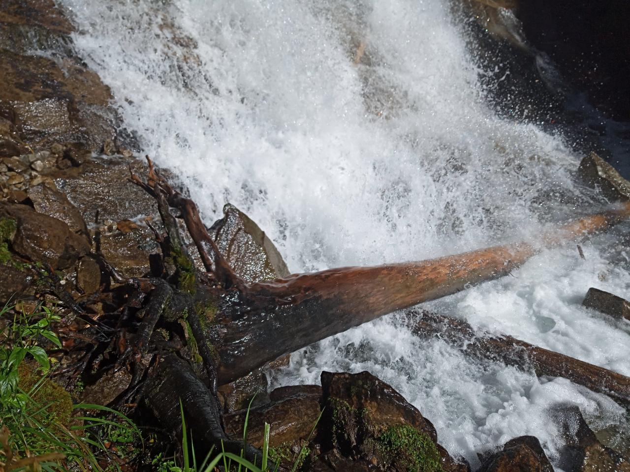 第1天 近期下了一场大雨,所以山脚下水流比较湍急,水流被分岔口“劈”成两半,流向远方,还真有种走迷宫的感觉。