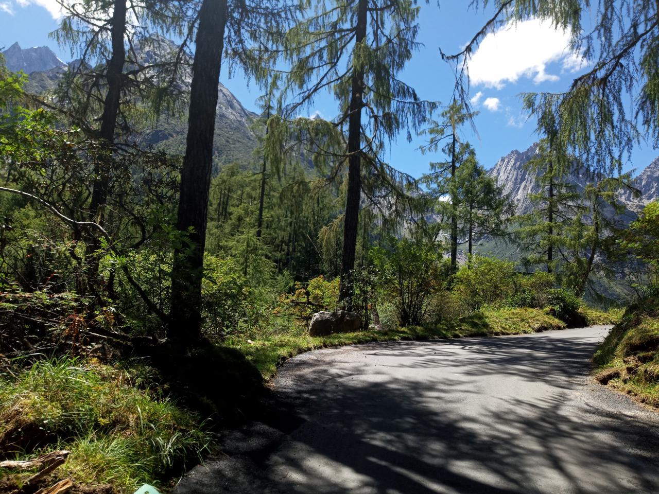 第1天 在下山路上总会有许多树木屹立在道路两旁,此时用“林荫小道”来形容在适合不过了,毕棚沟景区游览结束后我们打算前往红原县,距离并不是很远。