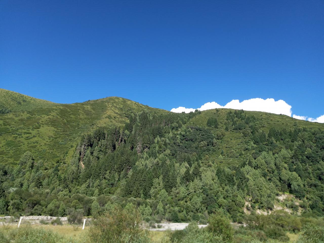 第1天 当继续上路时,一瞬间我们发现山似乎变了一个摸样,好像没有之前的密集繁茂了,平整的山面多了一些俏皮的“绿疙瘩”,这是大自然在为这些山“理发”么?