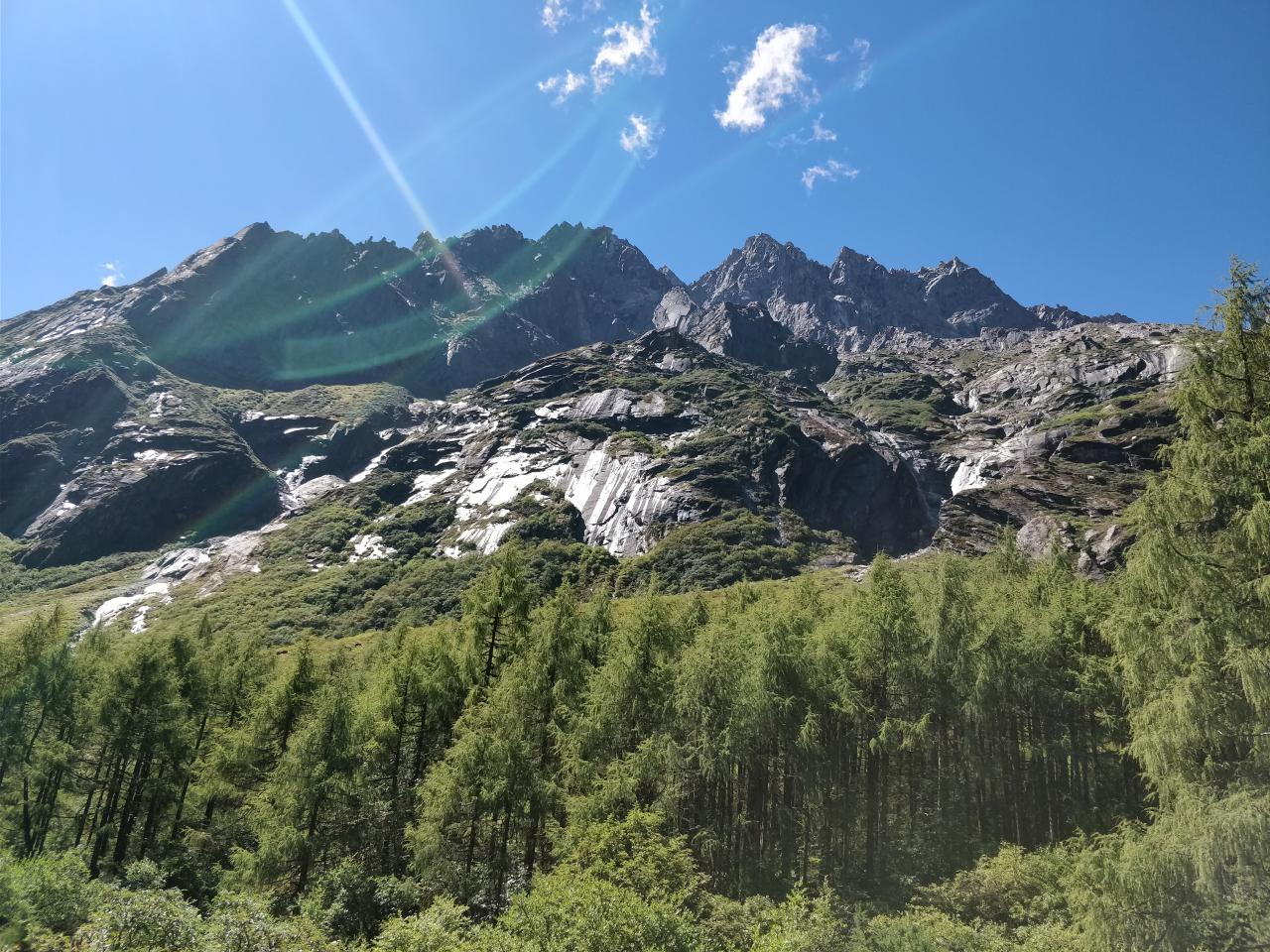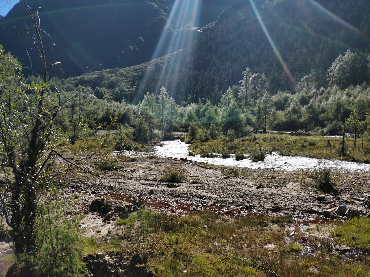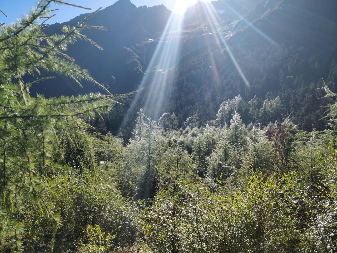 第1天 虽然看起来是烈日,但我们的实际体感温度较低。毕竟我们所在的毕棚沟海拔较高,气温较低,同行的伙伴有的都已经换上了毛衣。