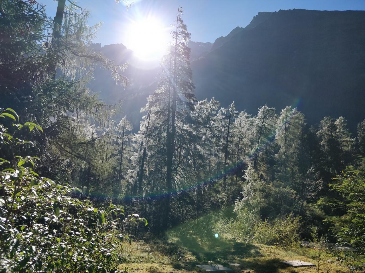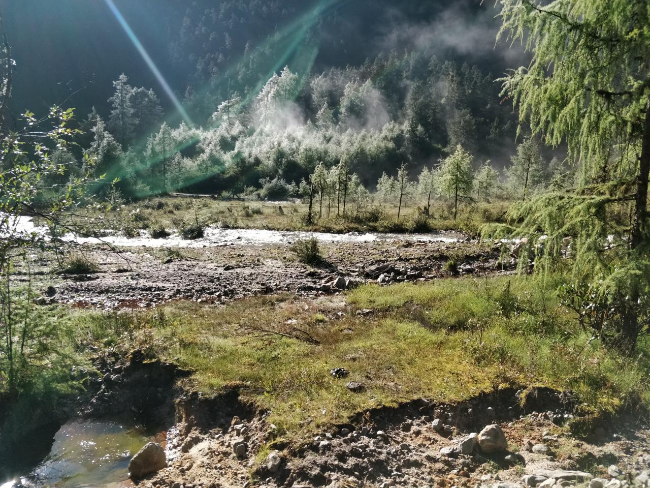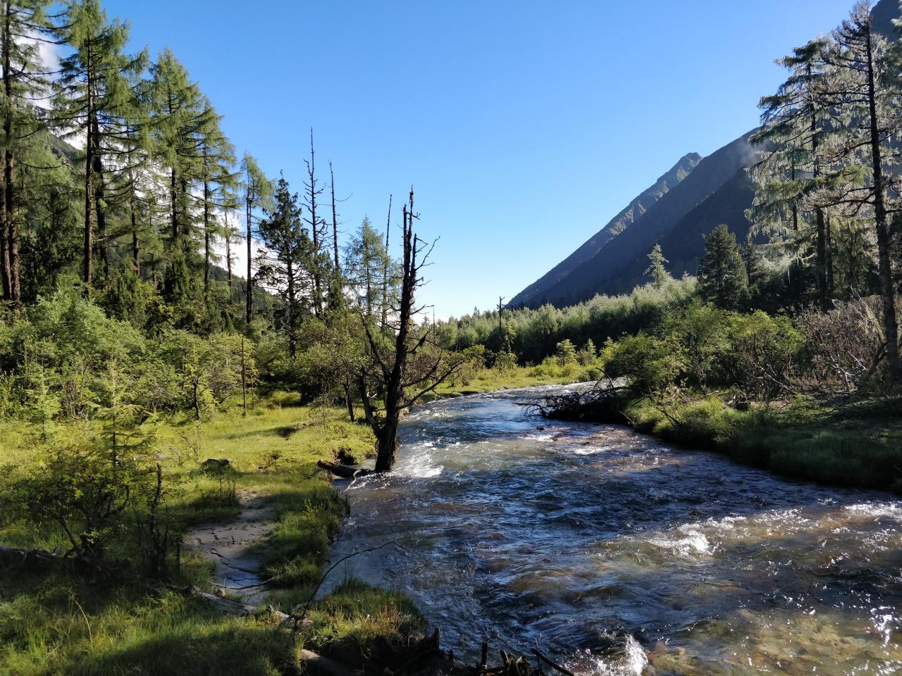 第1天 虽然看起来是烈日,但我们的实际体感温度较低。毕竟我们所在的毕棚沟海拔较高,气温较低,同行的伙伴有的都已经换上了毛衣。