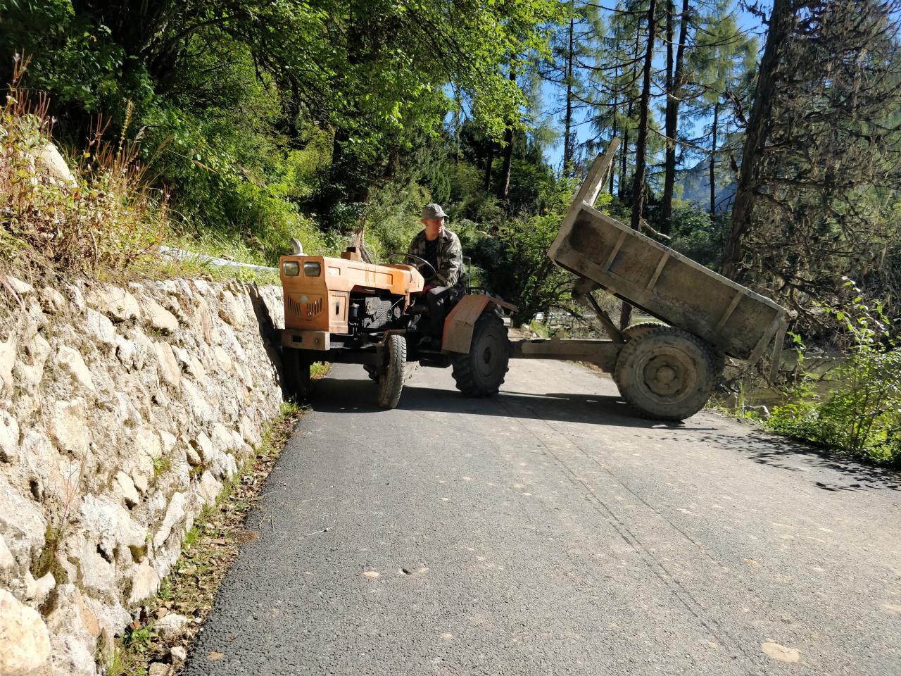 第1天 行进路上遇到一拖拉机正在倒建材,没有他们对景区的贡献,就没有我们这些游客。