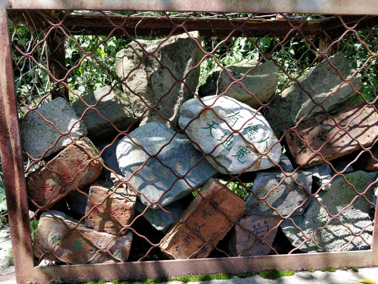 第1天 公墓前的铁丝笼,里面装了一些刻有字的石头,代表了人们美好的祝愿。