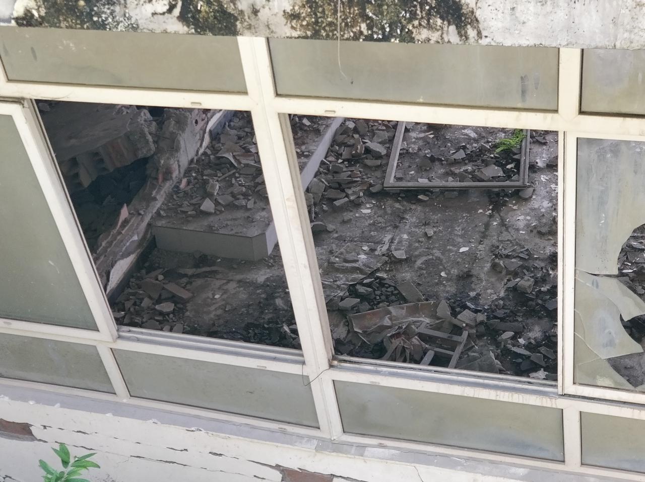 第1天 隔着破损的窗户,我们依然可以清晰的看见教室内部的瓦砾。