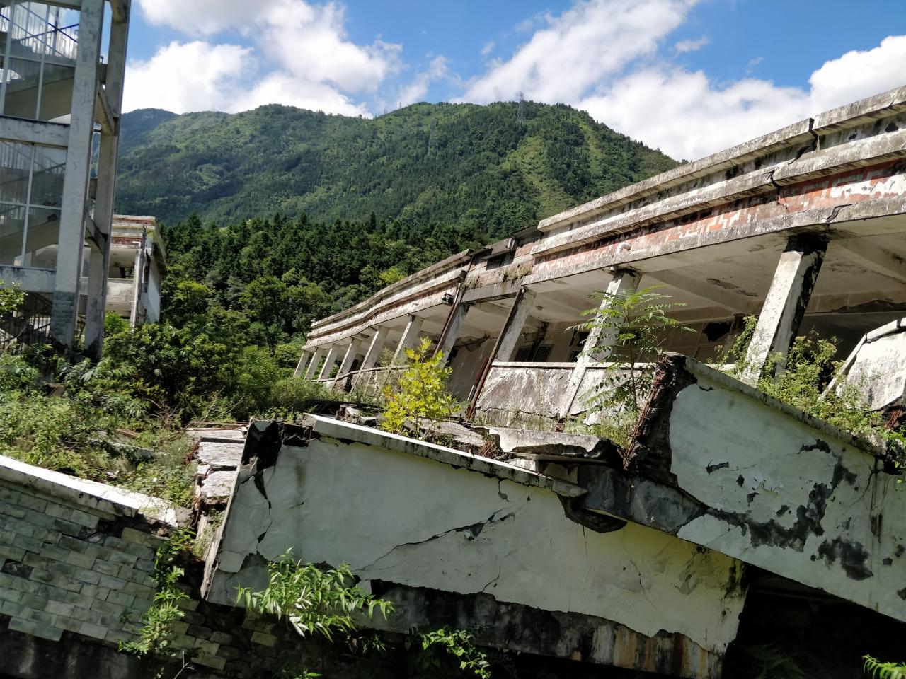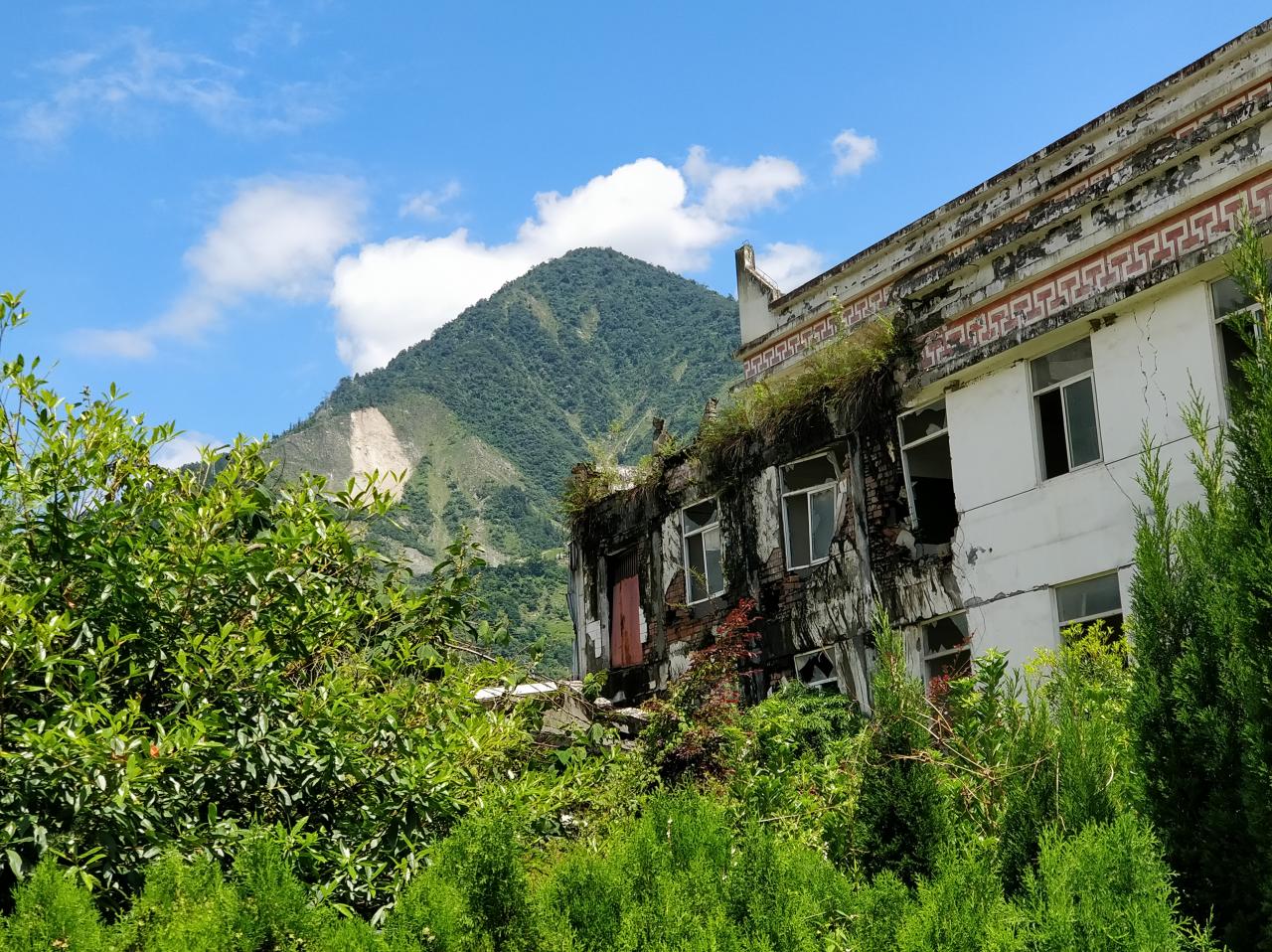第1天 天很蓝,山很绿,但眼前的的废墟很扎眼。