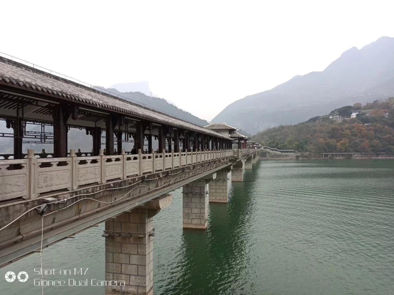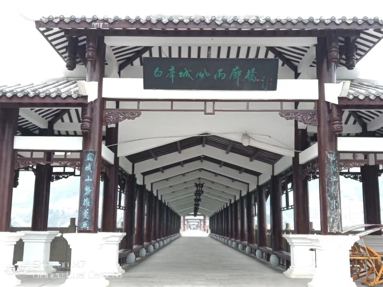 ![]() - 第1天 这座桥全名“白帝城风雨廊桥”,是近几年才修建竣工的仿古长桥,是通往白帝城的必经之路。其实它也不是为了开发而开发,因为历史上白帝城是三面临水一面靠陆的半岛,随着三峡大坝的竣工,毛主席老人家期待的“高峡出平湖”壮美景观实现了,水位上涨也导致原有的道路被淹。