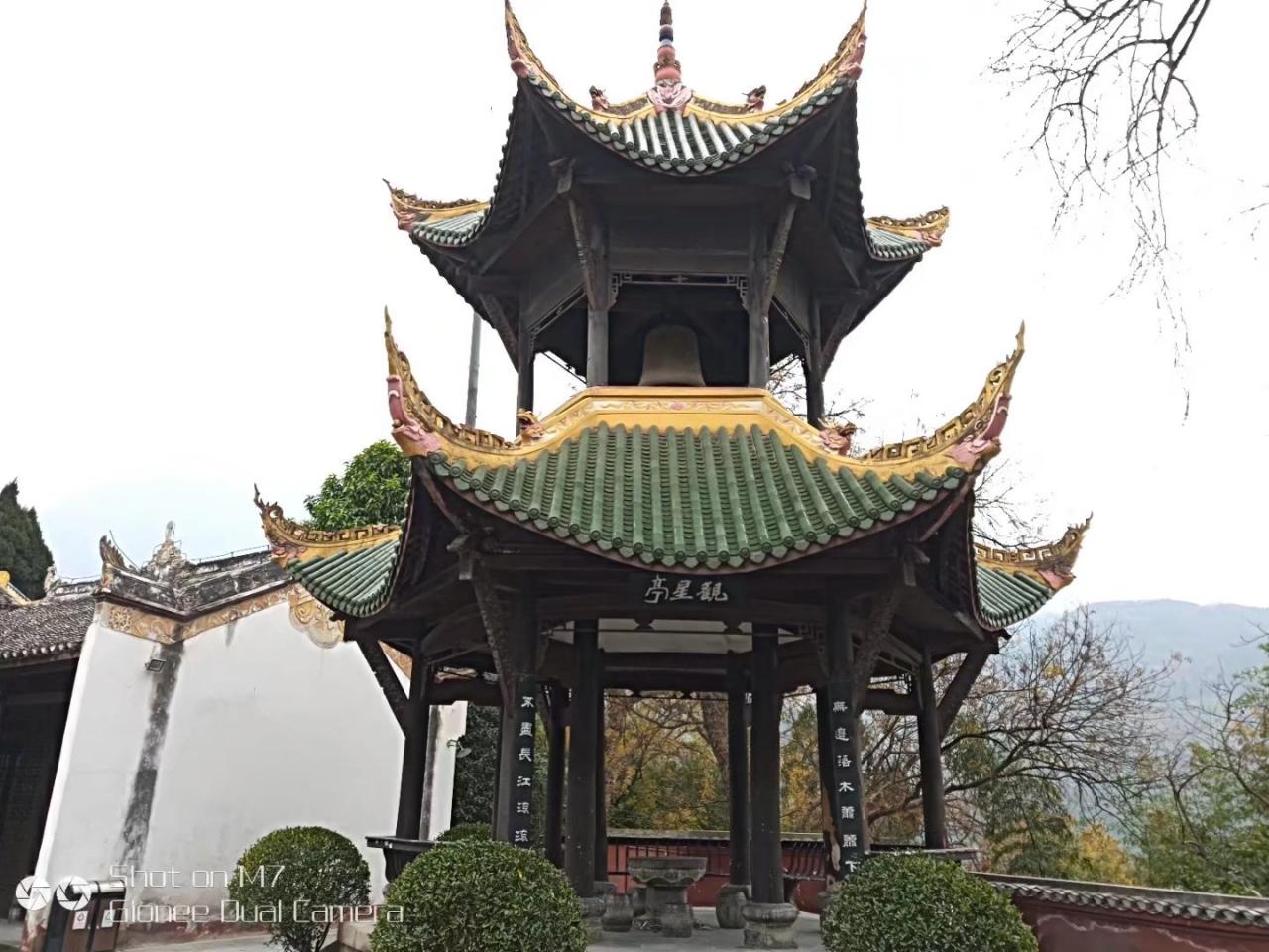 ![]() - 第1天 观星亭一瞥,黄绿主配色,6角12柱,翘角飞檐,气度不凡,传说诸葛亮率军入川时曾在此夜观天象。