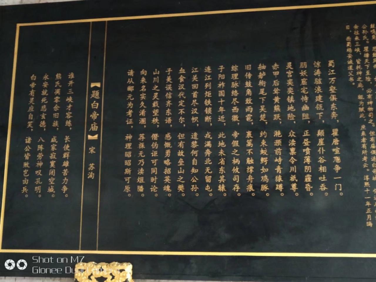 ![]() - 第1天 除了杜甫,很多文人骚客都在白帝城留下自己的笔墨,如李白、陈子昂、陆游、范成大等,都是在中国文学史上大名鼎鼎的人物,故白帝城也称为诗城,左为三苏之一的苏洵的《题白帝庙》。