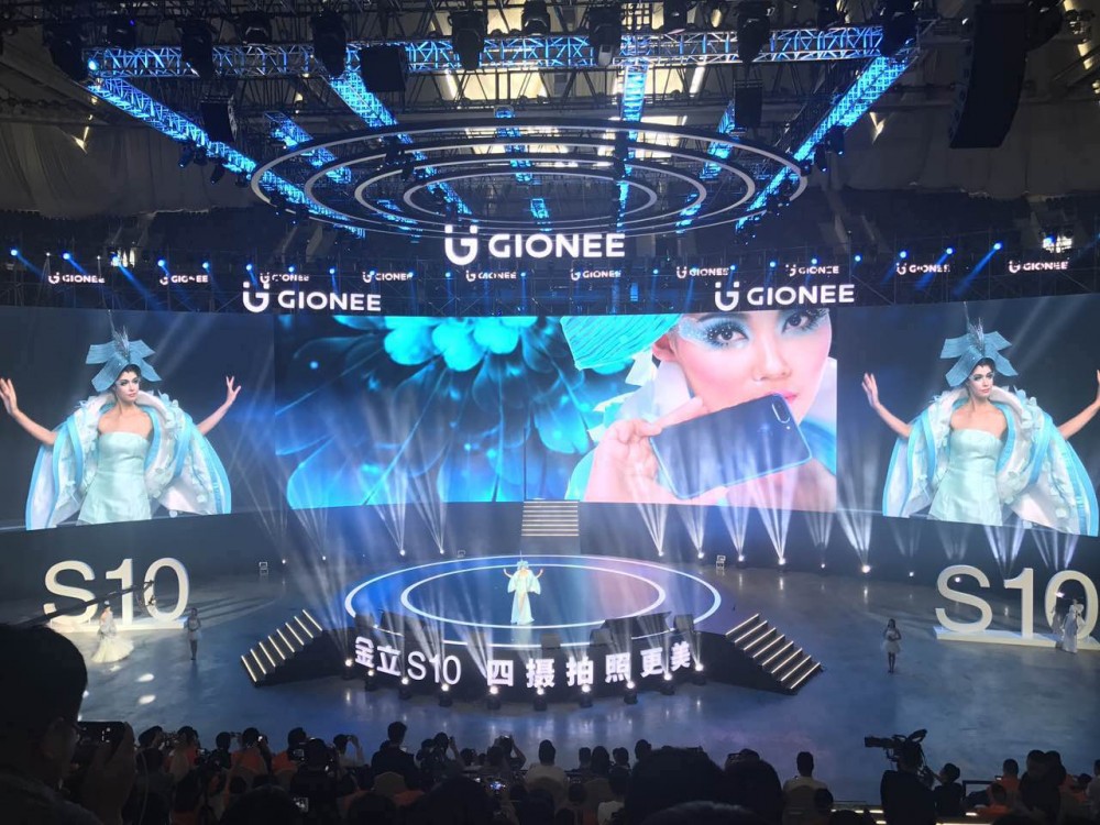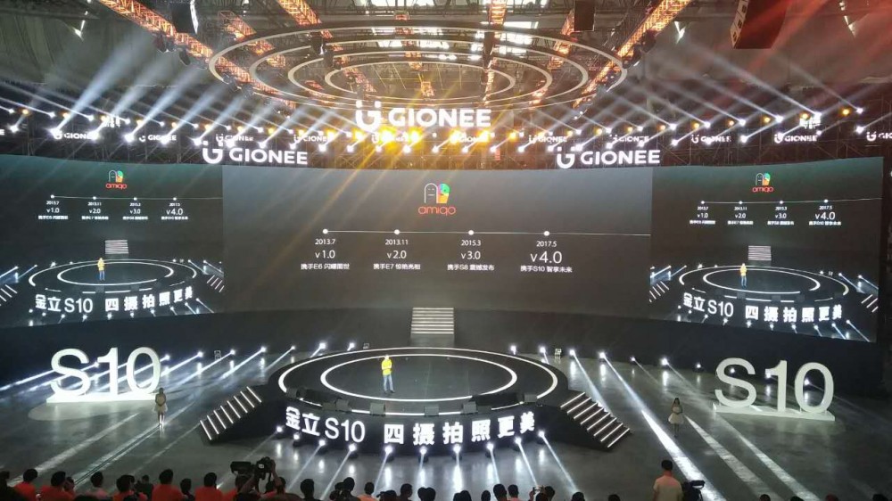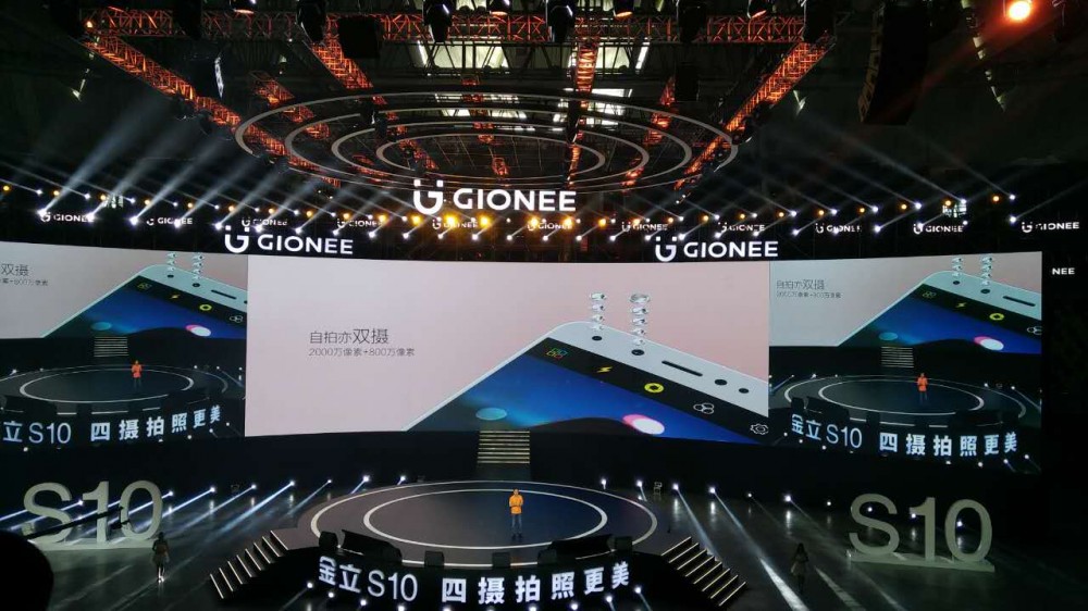 进入会场,舞台布置的相当高大上,很明显四颗摄像头将成为金立S10的最大亮点,金立究竟会配套何种算法?这也是本次发布会的一大看点??当然对于迷妹们来说,和薛之谦合影也是主要任务。