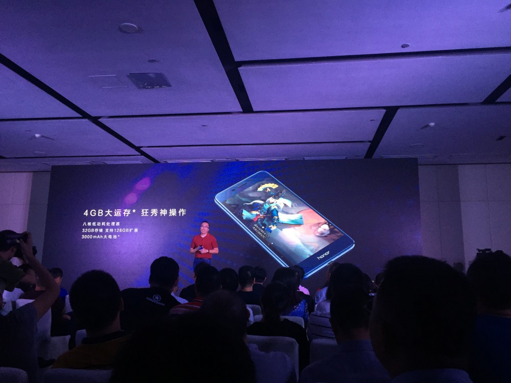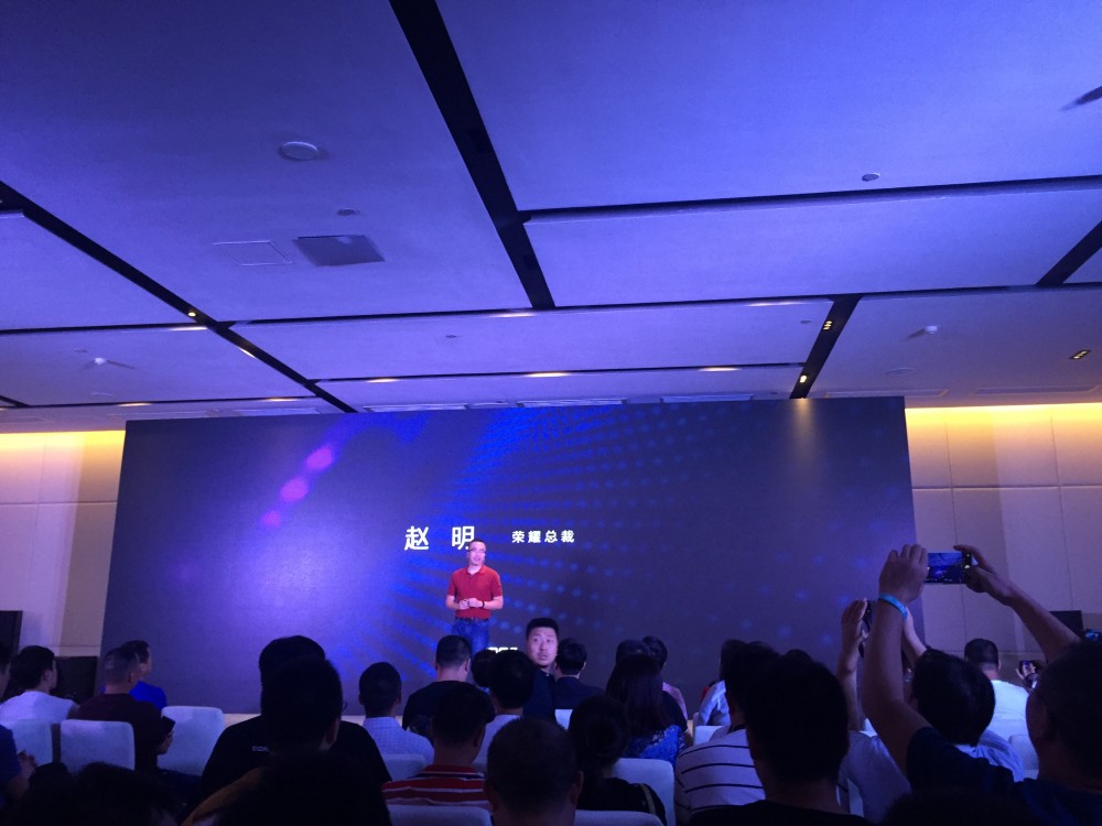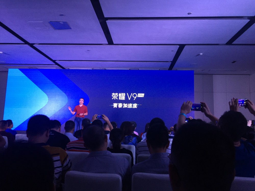 荣耀总裁赵明先生上台即将为我们带来荣耀V9play。