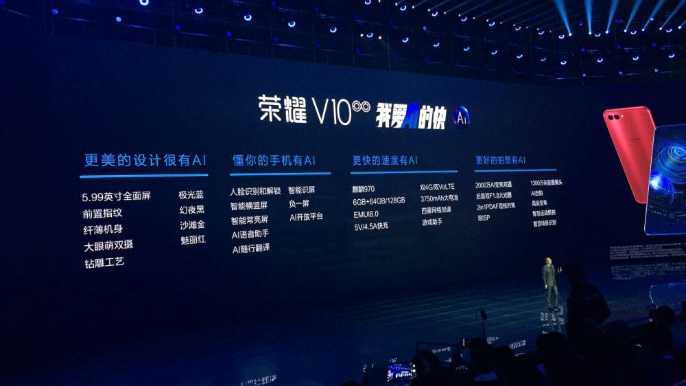 荣耀V10将联合全球开发者,帮助提升AI智能。
