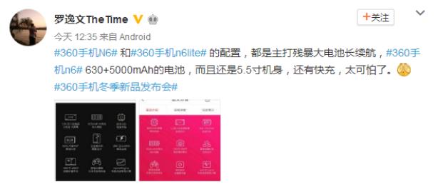 据微博大V爆料,这次的360手机N6搭载骁龙630移动平台,5.5英寸机身,还配有快充!