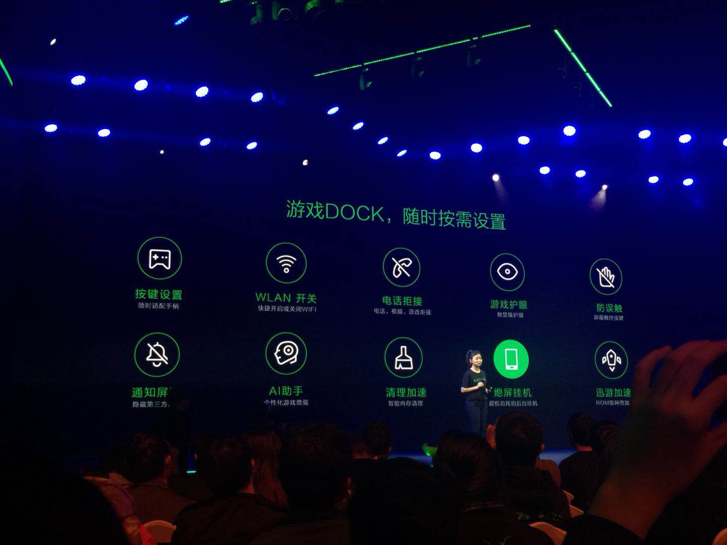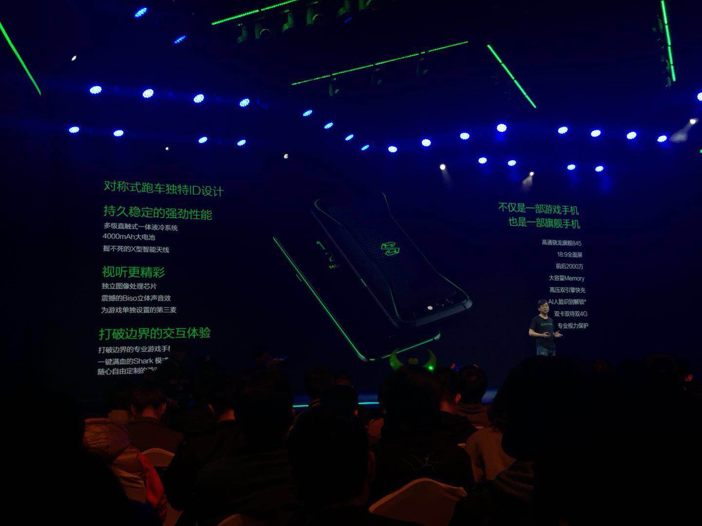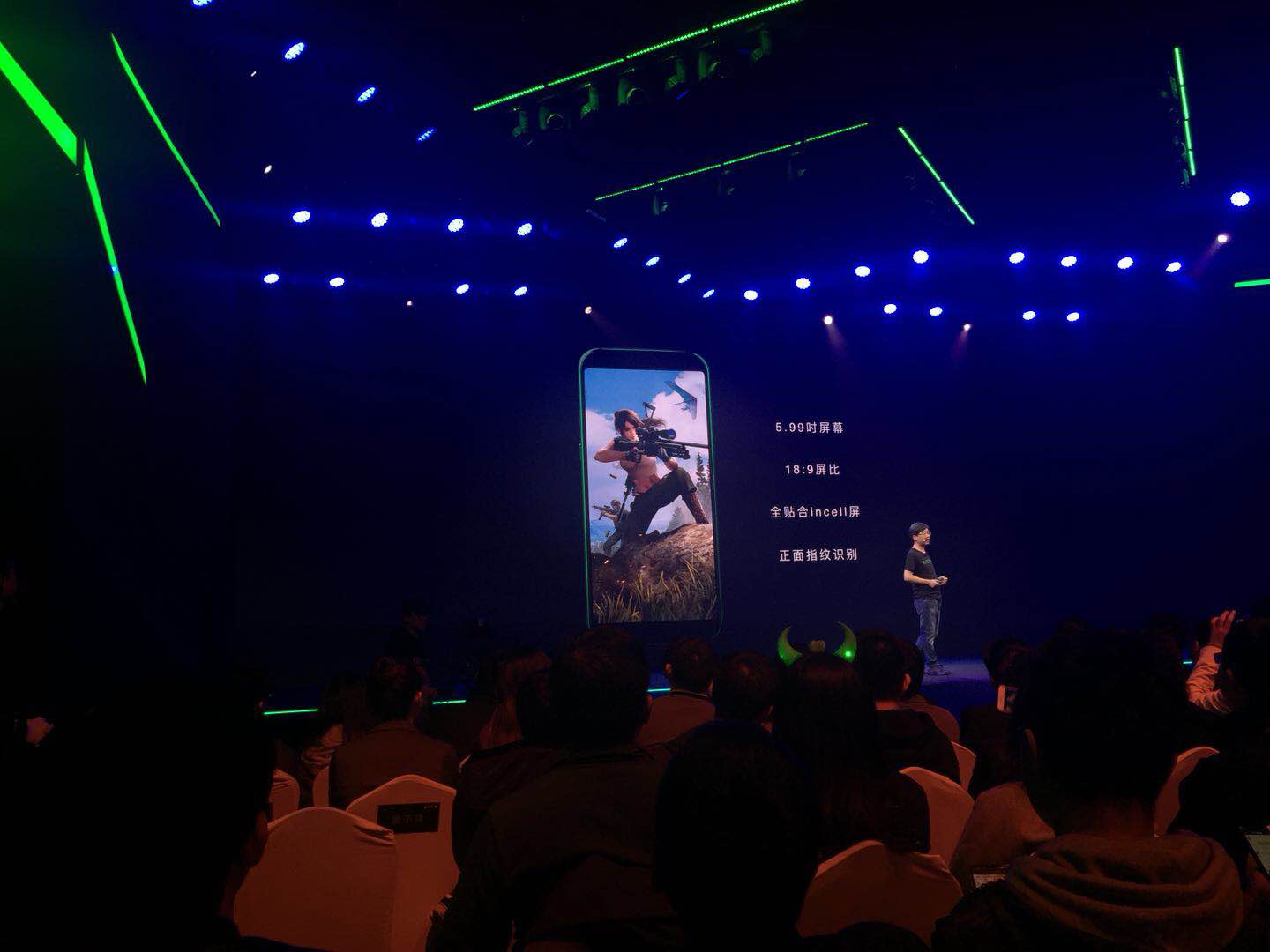 接下来,吴世敏先生将为我们介绍黑鲨游戏手机的整体设计。正面是一块5.99屏幕18:9的全面屏
