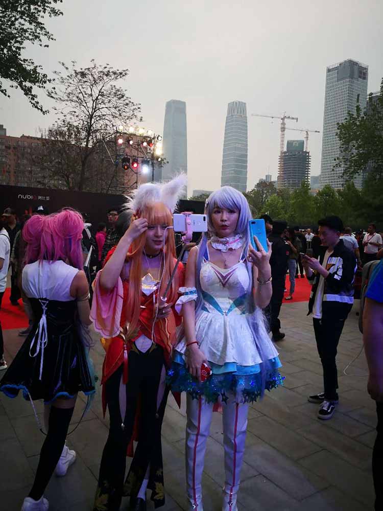 在发布会现场外,出现了许多COSER小姐姐,这些小姐姐有些大部分都来自于游戏中的人物,与红魔游戏手机主题相契合。