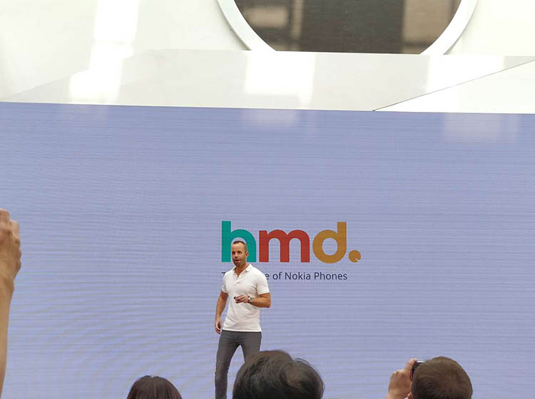 在场地的大屏幕上印着hmd的logo。HMDglobalOy是芬兰一家初创公司,主要创始人均来自诺基亚。目前HMD在富士康旗下。