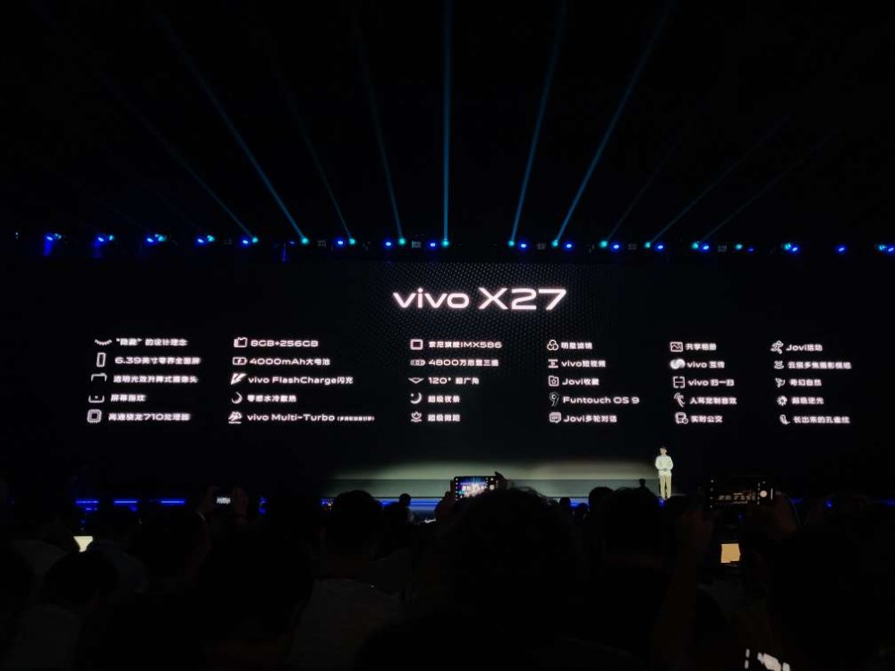 值得一提的是,在3月初播出的《快乐大本营》中,vivo X27就已经亮相,从节目中可看到其采用了升降式镜头。