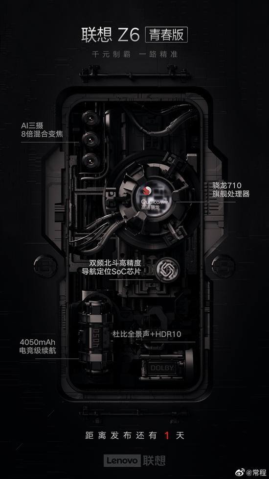 联想Z6青春版是联想第三款搭载骁龙710 AIE旗舰移动平台的手机。