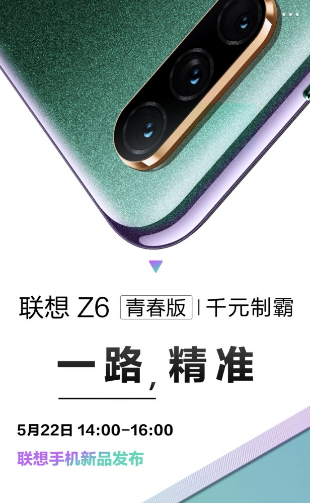 联想Z6青春版5月22日16:00,开启预约,5月28日开售。