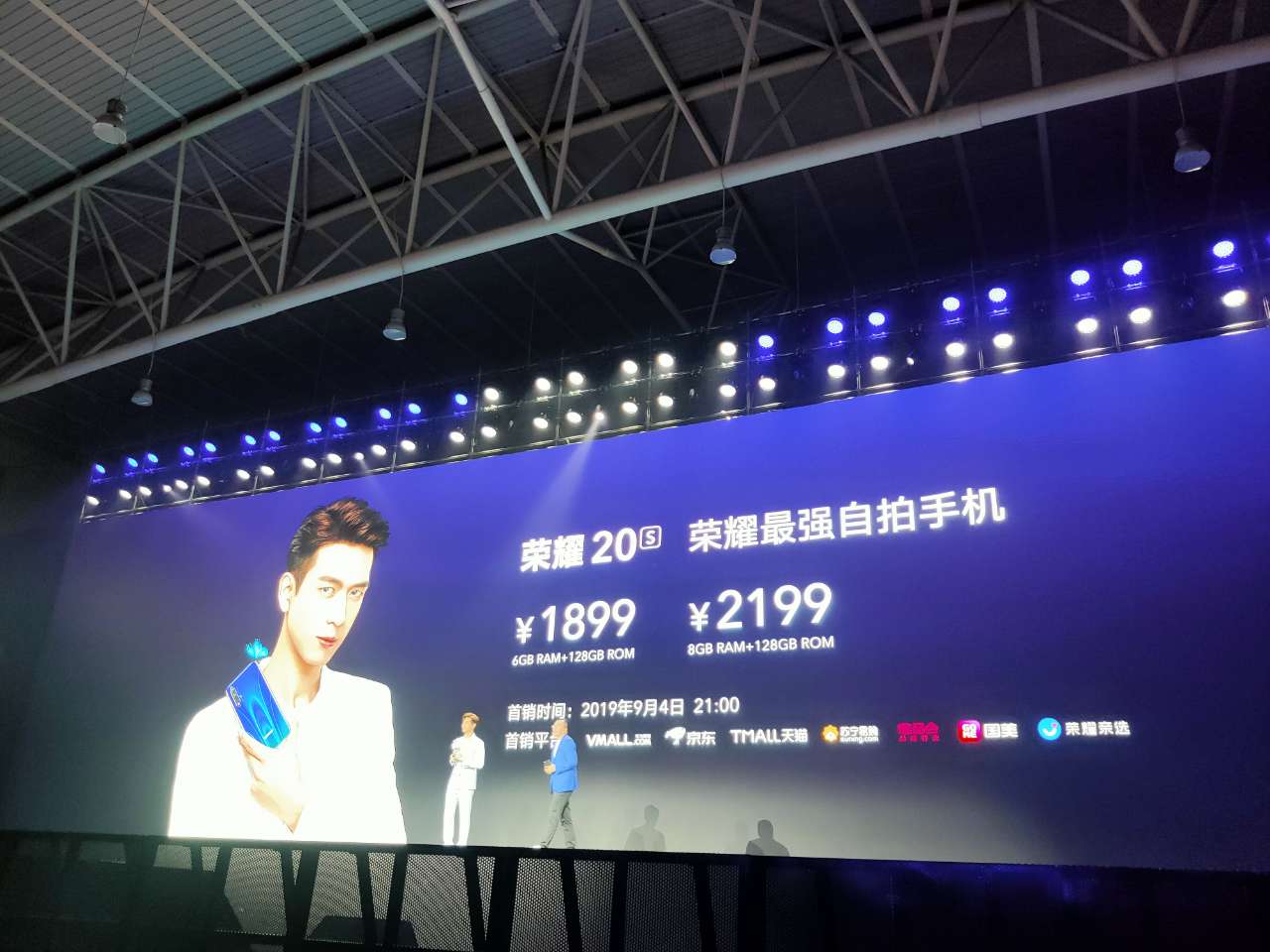 荣耀20S定价:6GB+128GB:1899元,8GB+128GB:2199元,今晚九点首销