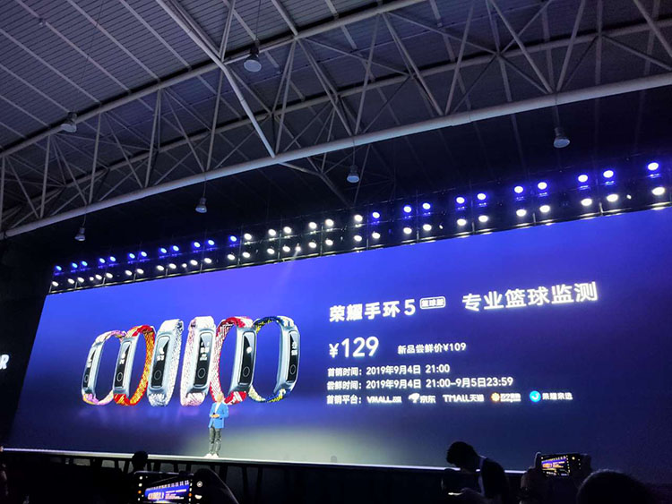荣耀手环5篮球版定价129元,今晚十点首销,9月4-5日尝鲜价109元。