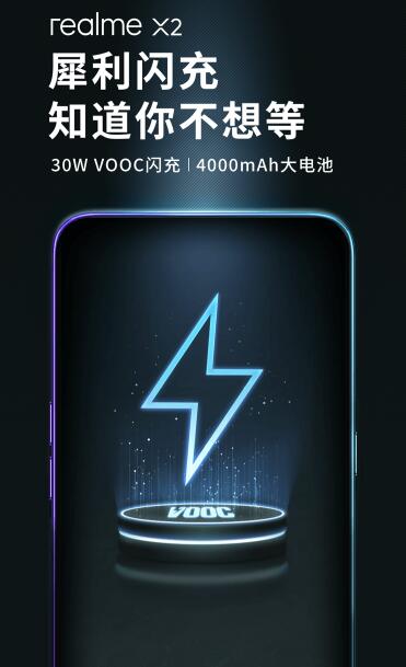在电池容量方面,realme X2将配备4000mAh 电池,并支持全新的 30W VOOC 闪充,无论是续航水平还是充电效率都将不错。