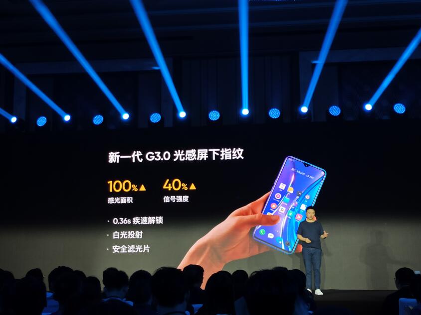 新一代G3.0光感屏下指纹技术,0.36秒快速解锁