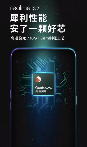 在处理器方面,realme X2将搭载骁龙 730G 移动平台,性能非常高,可以为用户带来最极致的游戏体验。