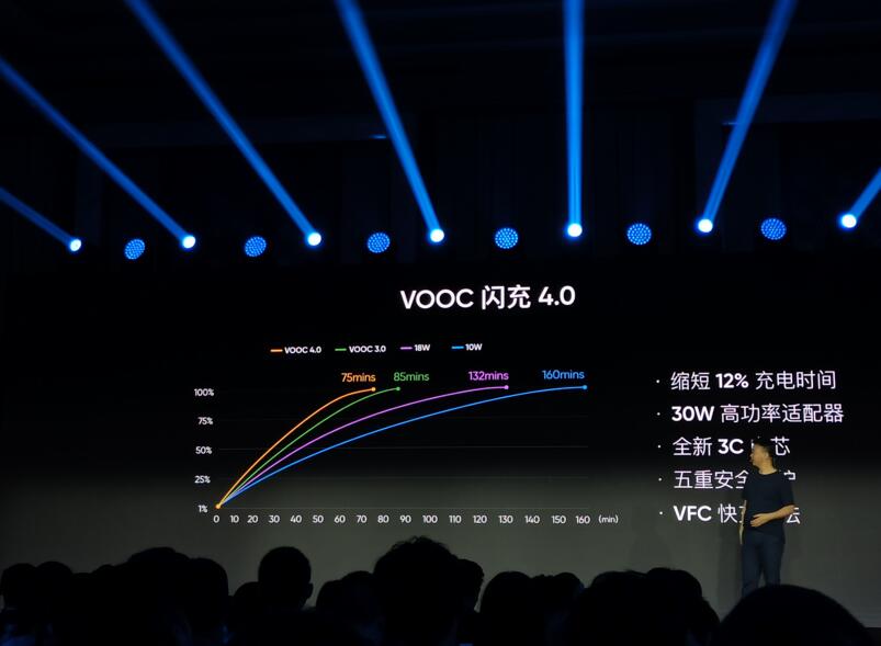 VOOC闪充4.0技术更是让充电效率暴涨,30W功率逆天。