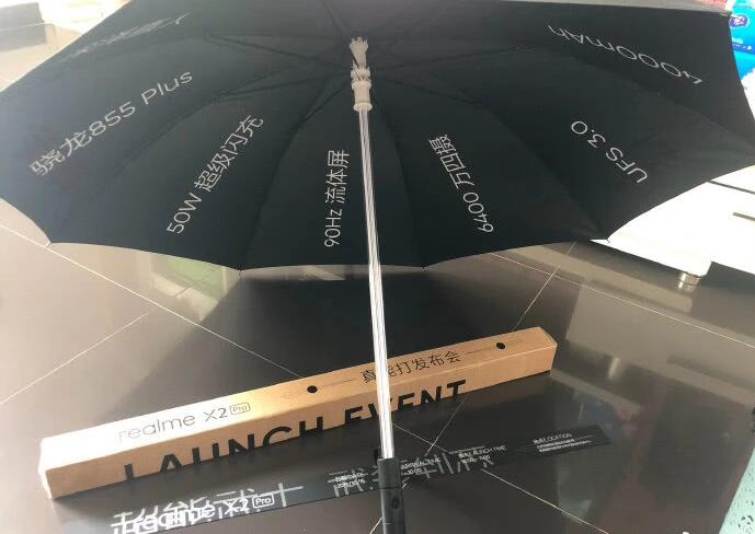 realme X2 Pro邀请函的那一把雨伞大家还都记忆犹新,6400万像素四摄、UFS3.0、50W超级闪充、90Hz流体屏、骁龙855Plus处理器。,着实强悍