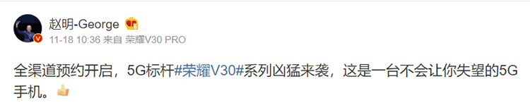 赵明登台,荣耀V30它来了!