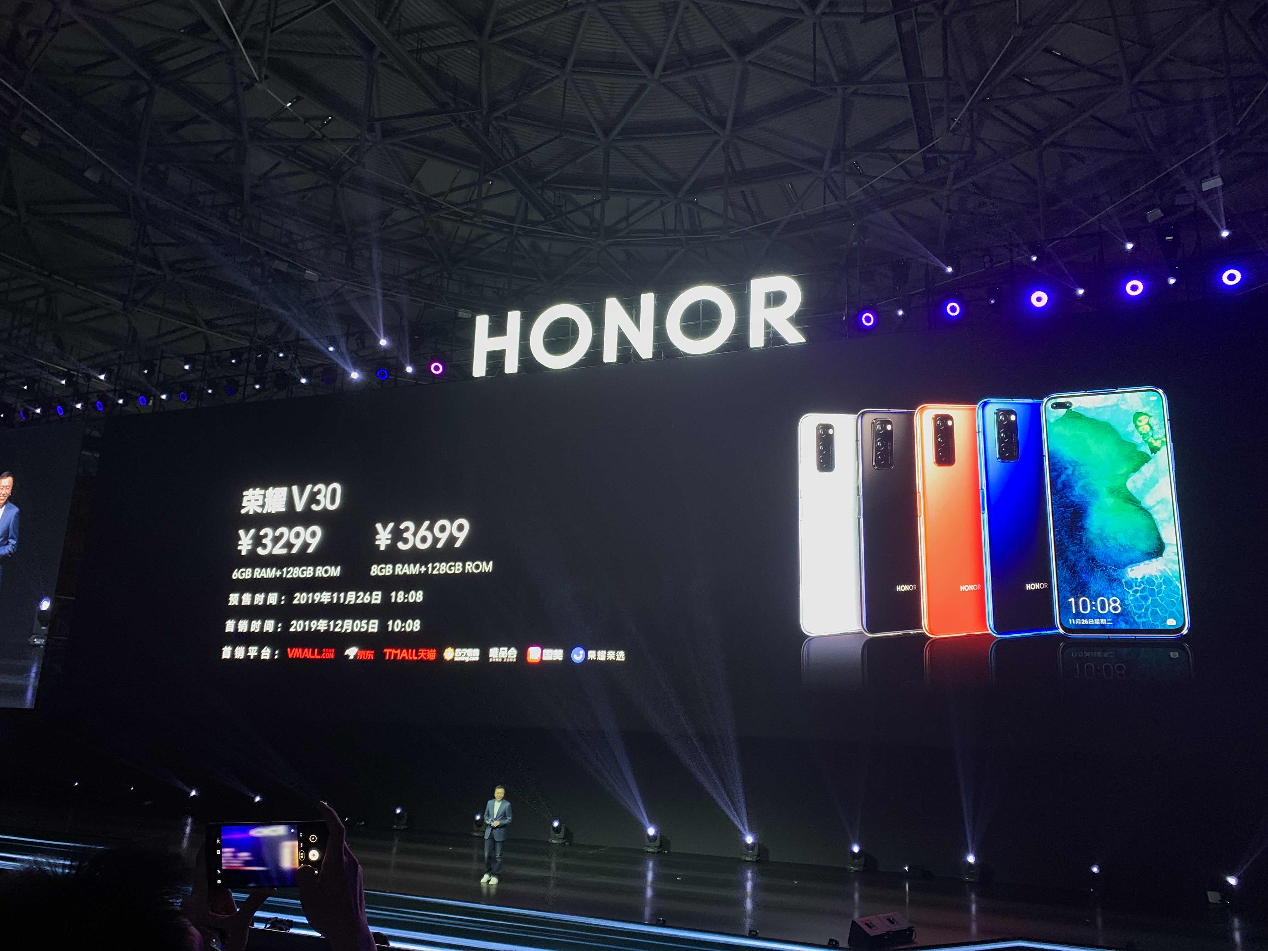 荣耀V30起售价为3299元,内存版本为6GB+128GB。