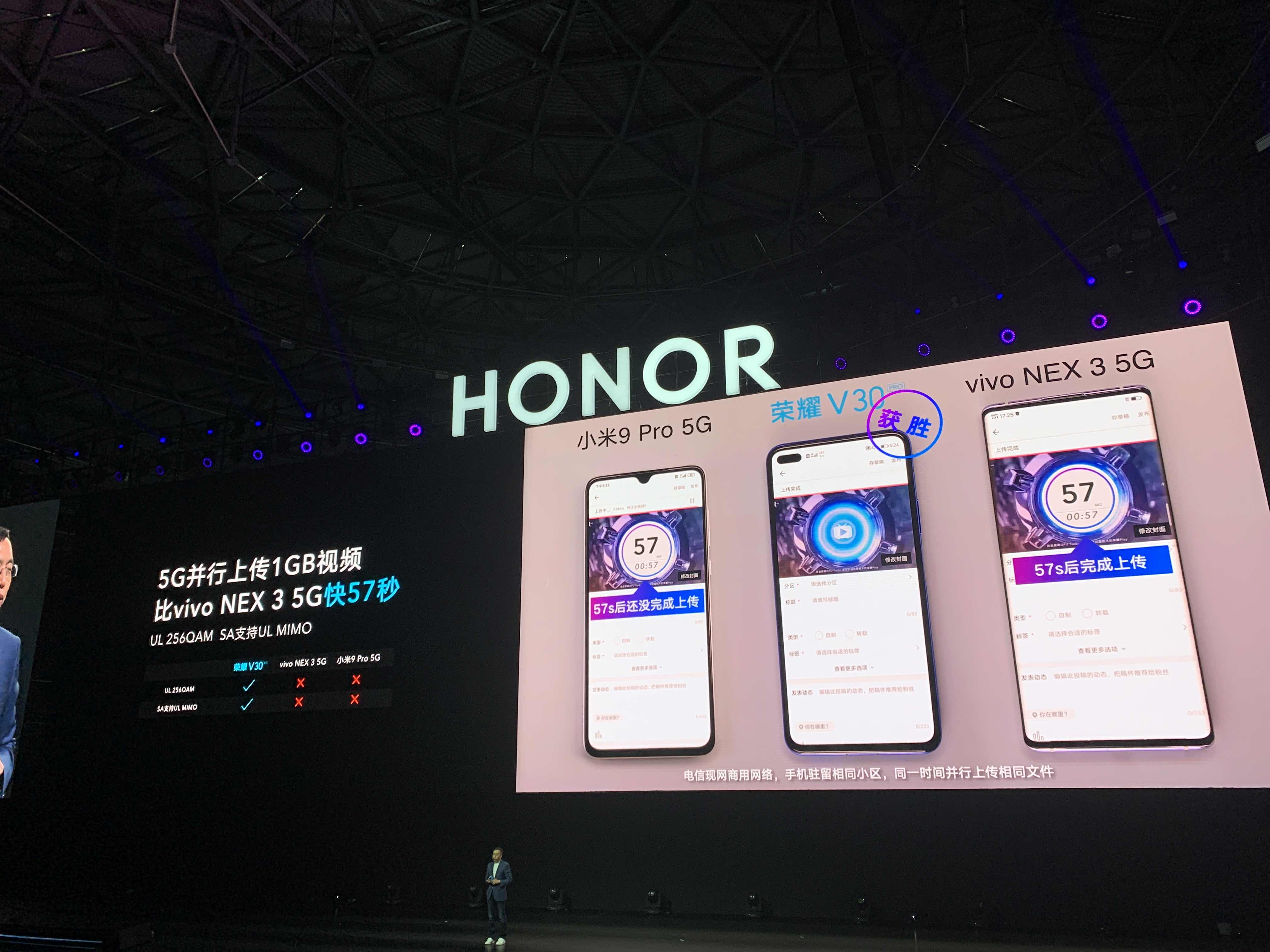 5G并行上载对比,荣耀V30再一次领先……小米这也太惨了。