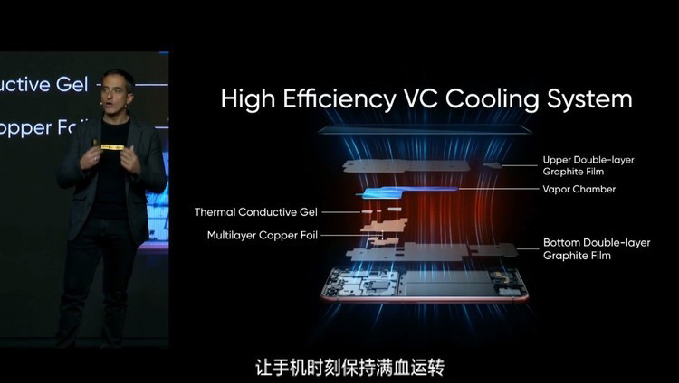 散热方面,realme新机搭载了VC液冷散热系统,毕竟5G芯片能耗高,散热确实需要多注意!
