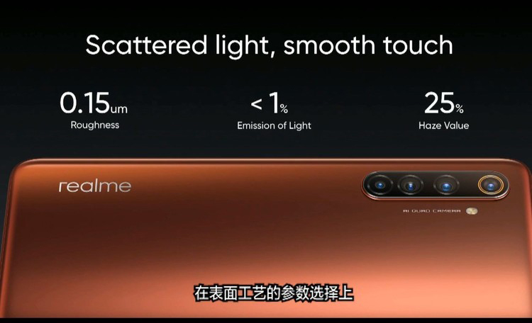 realme X50 Pro 5G采用青苔与红锈两种配色,同时还采用了AG玻璃工艺