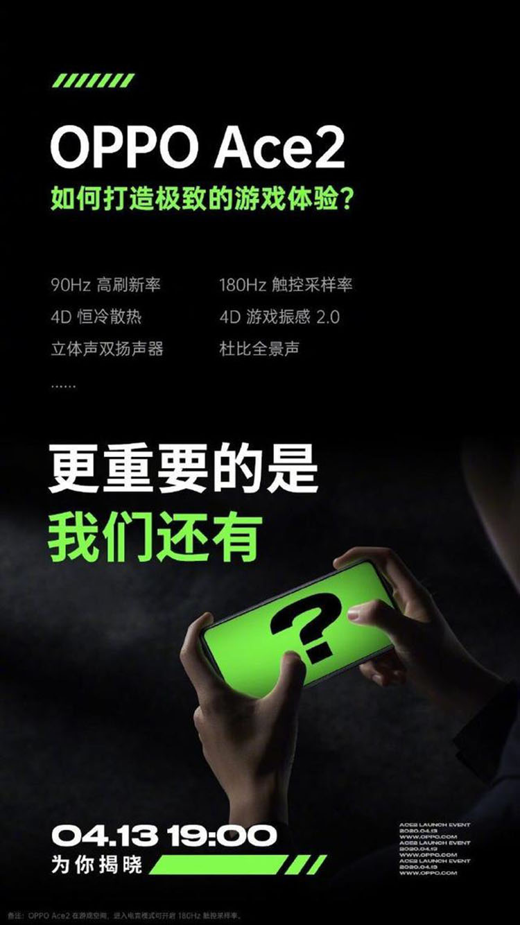 4月13日晚上19点,OPPO将举办OPPO Ace2超玩大会,正式发布新一代高性能手机OPPO Ace2。