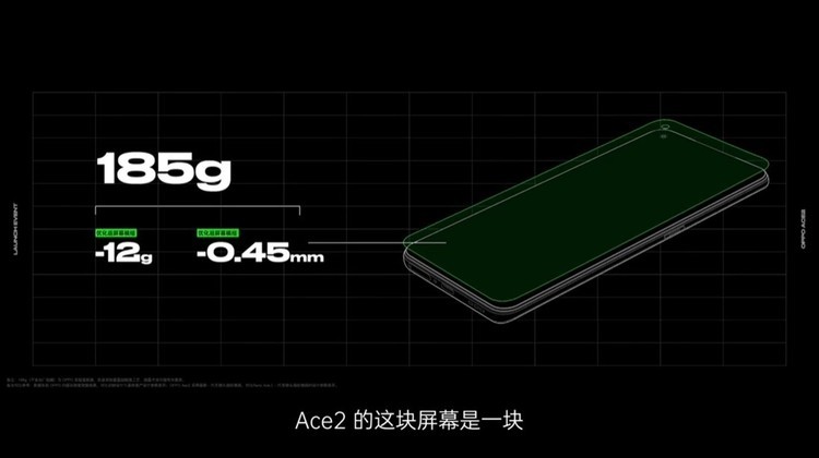 OPPO Ace2 采用COP封装,整个屏幕组件比上一代减薄了0.45mm,轻了 12g。屏幕指纹升级到了最新一代无镜头模组,本身减薄了 90%。种种措施让手机的机身重量减少至185g,双手握持手感更棒!