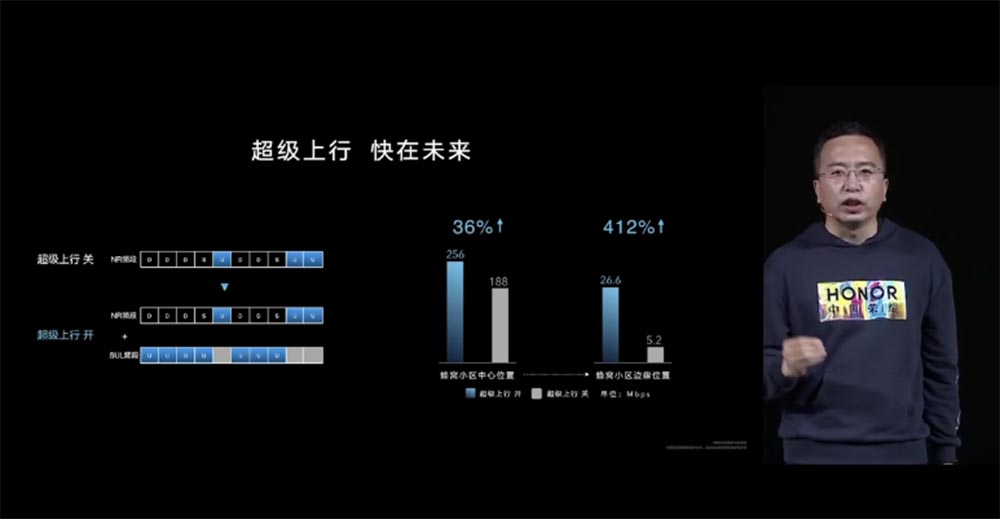 荣耀X10支持超级上行,如果5G TDD上行带宽不够,就用FDD上行带宽来补充,通过TDD+FDD的方式合力提升上行吞吐率,并缩短时延。相同网络条件下,荣耀X10上传速度较竞品快20%-50%。