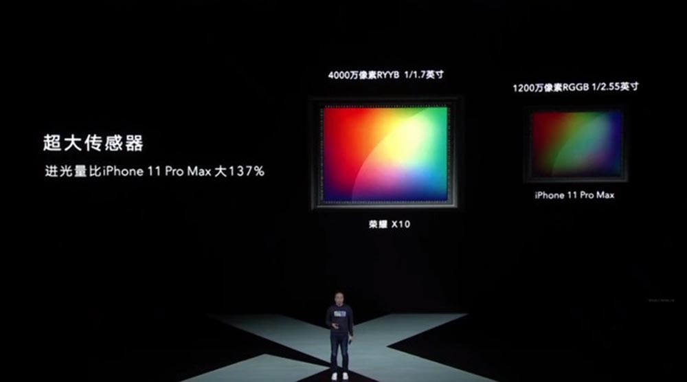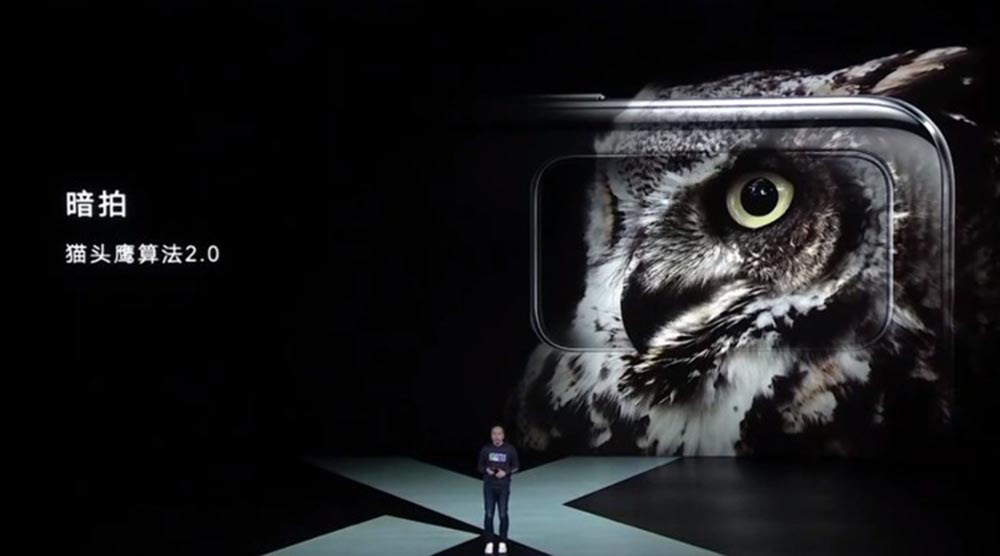 RYYB超感光传感器进光量较iPhone 11 Pro Max大了137%,ISO感光度达到了153600,还支持猫头鹰算法2.0,夜拍更清晰。