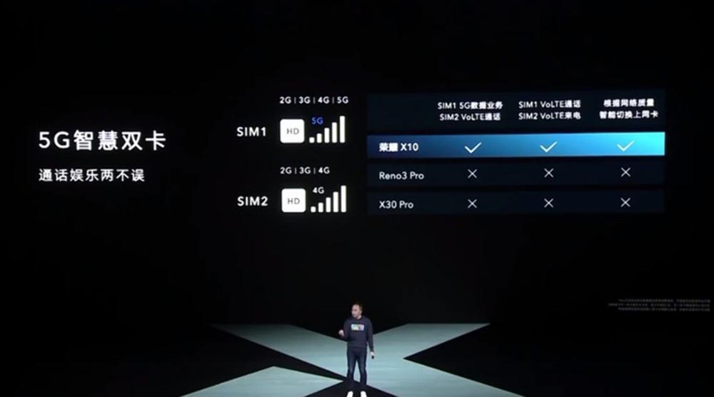 荣耀X10支持5G智慧双卡,能智能切换网络、双卡槽和SD卡扩展。