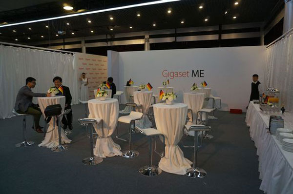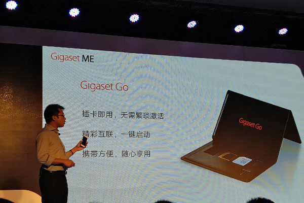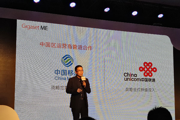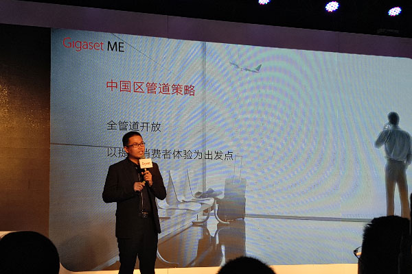 Gigaset大众化区营销经理登台,未来会与移动、联通合作,另外还会在天猫、京东开设旗舰店。还会支持分期付等服务。