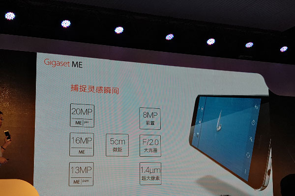 下面到了介绍手机拍照的时间,GigasetME系列有三款手机,摄像头的规格不同,Pro最强,有2000万像素。ME.是1600万像素,Pure是1300万像素。