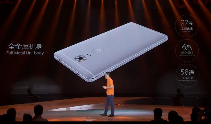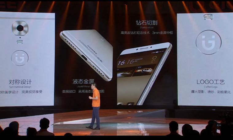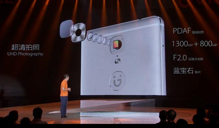 配置开始了,AMOLED,前置指纹,超清拍照,双主卡全网通,超大存储,这PPT切的有点快,还好在现场还是能感受到金立手机的强大气场。