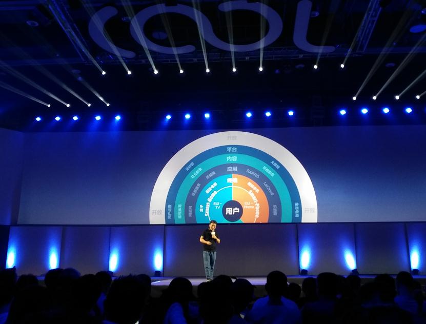 现场大屏展示了乐视生态圈,真正围绕用户的方方面面。